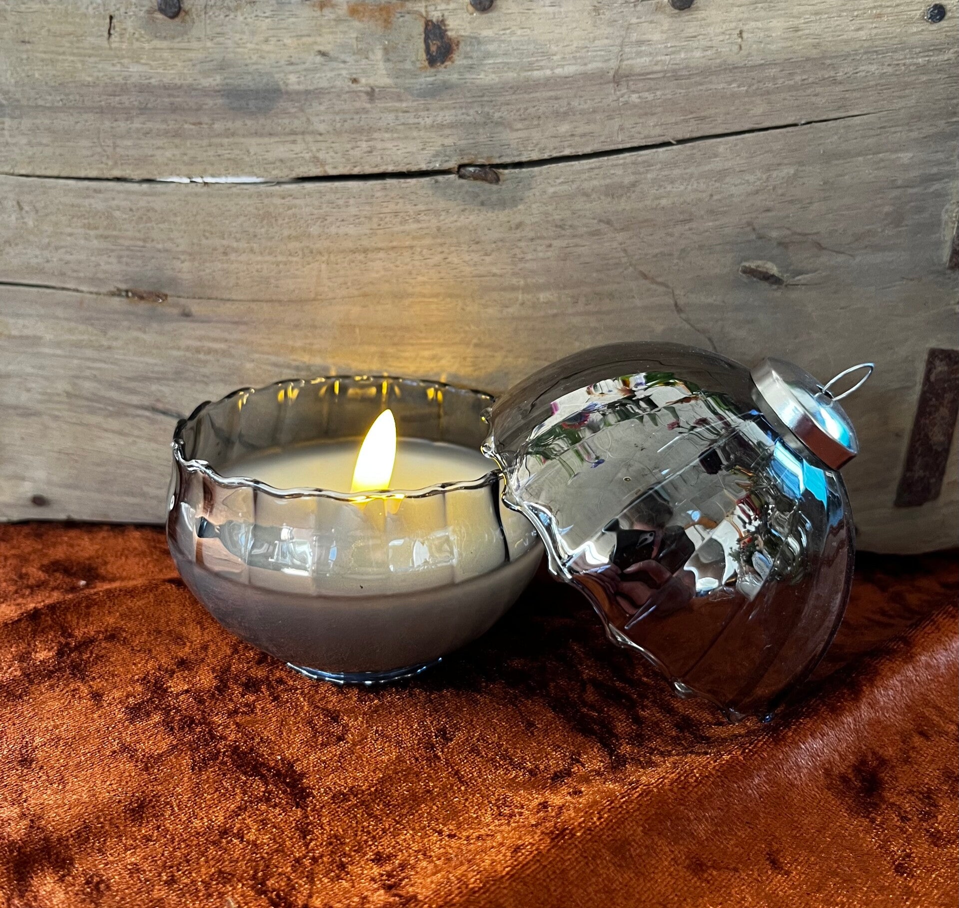 Een mooie sfeervolle kaars in een glazen bol.