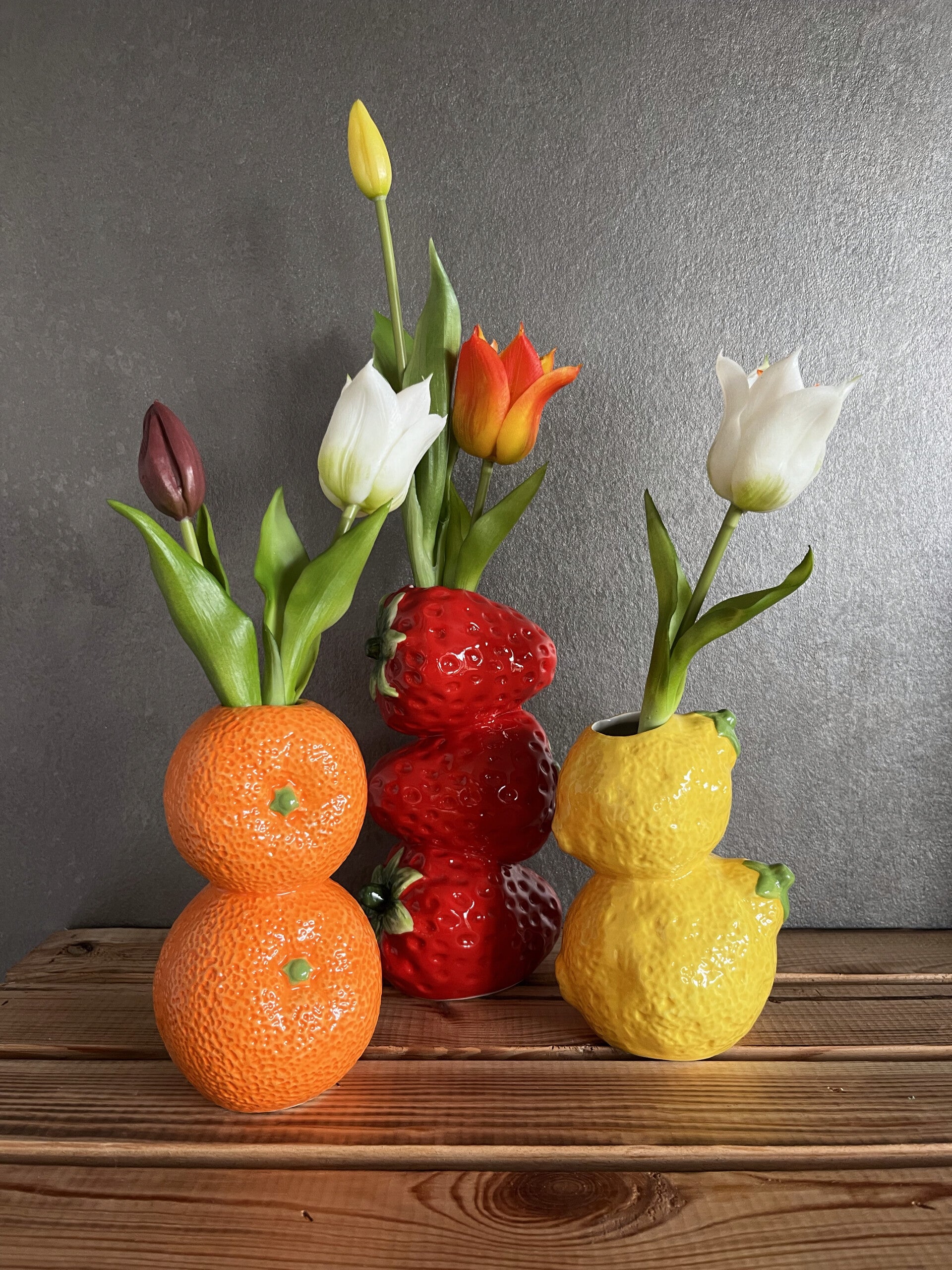 Fris je interieur op met deze charmante citroen vaas! Met haar speelse ontwerp en levendige gele kleur brengt deze 8x15 cm vaas direct een zomerse sfeer in huis. Perfect voor kleine bloemen, droogbloemen of als decoratief accent.